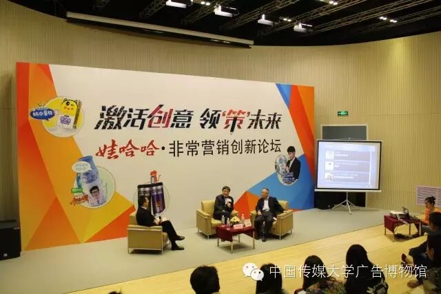 活动最后,娃哈哈集团董事长宗庆后和中国传媒大学广告学院院长丁俊杰以论坛沙龙的形式与学生进行交流、畅谈、答学生问,开展了一场学生与企业之间零距离的对话。
